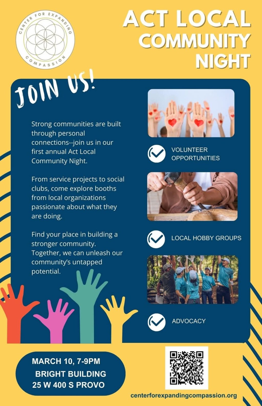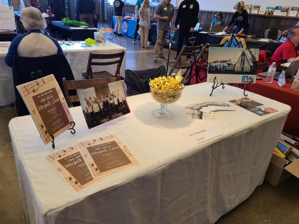 The Utah Valley Interfaith Choir had a booth tonight at the ACT Local Community Night at the Bright Building in Provo to share choir’s mission with the community.